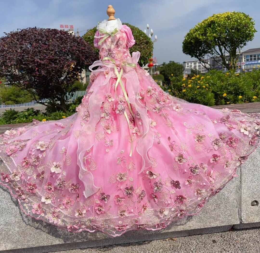 【予約商品】お花モチーフのピンクロングドレス