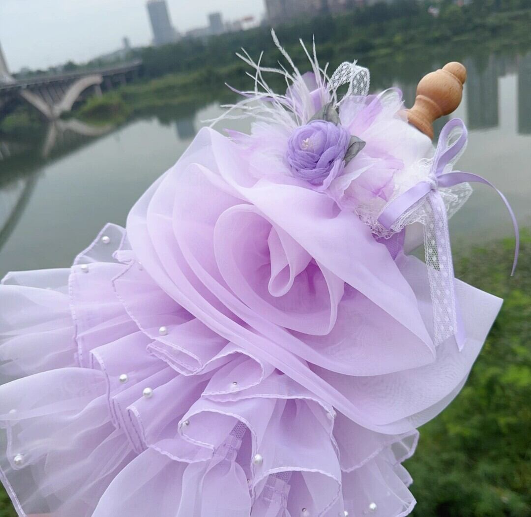 ドレスの裾もボリュミーで、腰には大きな大きなフラワーモチーフのゴージャスなバイオレットのショートドレス♡