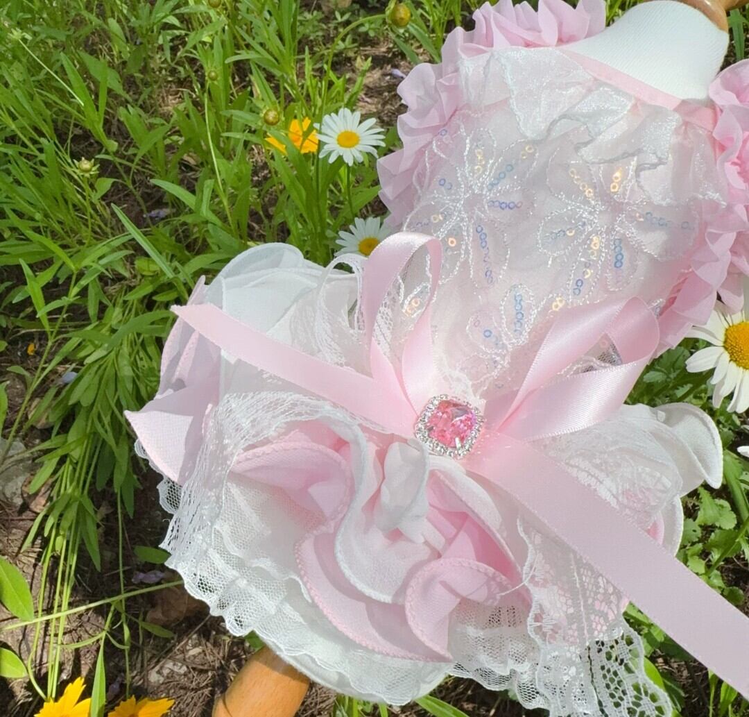 在庫限り【即納商品】キラキラビジュー付きリボンのキュートサンドレス(ピンク、ブラック、ホワイト)