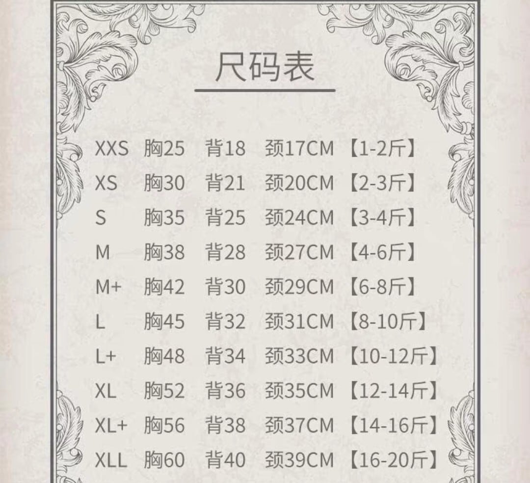 サイズは最後の画像でご確認の上、ご注文をお願いいたします。サイズ表は、胸囲、着丈、首周りの順にサイズが載っています。