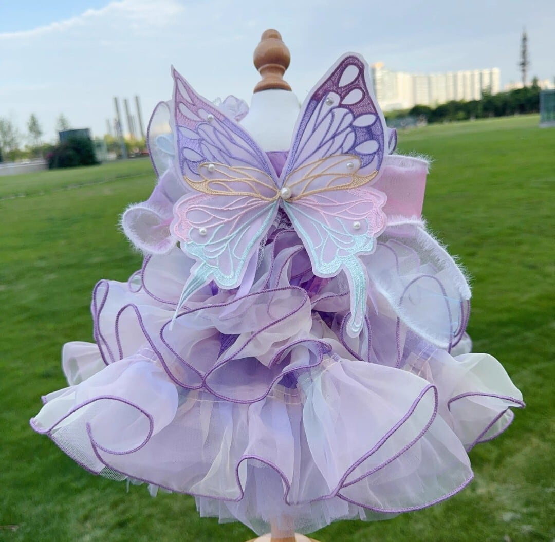 【予約商品】バタフライモチーフのパープルフリルドレス