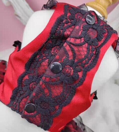 赤いドレスにブラックのレースがきいた大人可愛い豪華なドレス♡