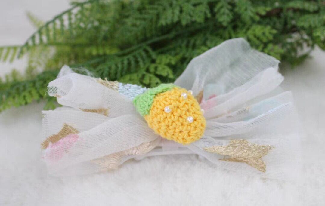 画像5枚目と6枚目のドレスとお揃いのリボンのプラクリップのヘアアクセサリーもご希望の方は、オプションからご選択ください。ピンクのドレスには黄色の苺が付いているヘアクリップ、ブルーのドレスにはピンクの苺の付いたヘアクリップがお揃いになります。