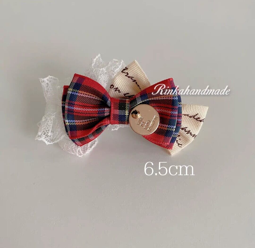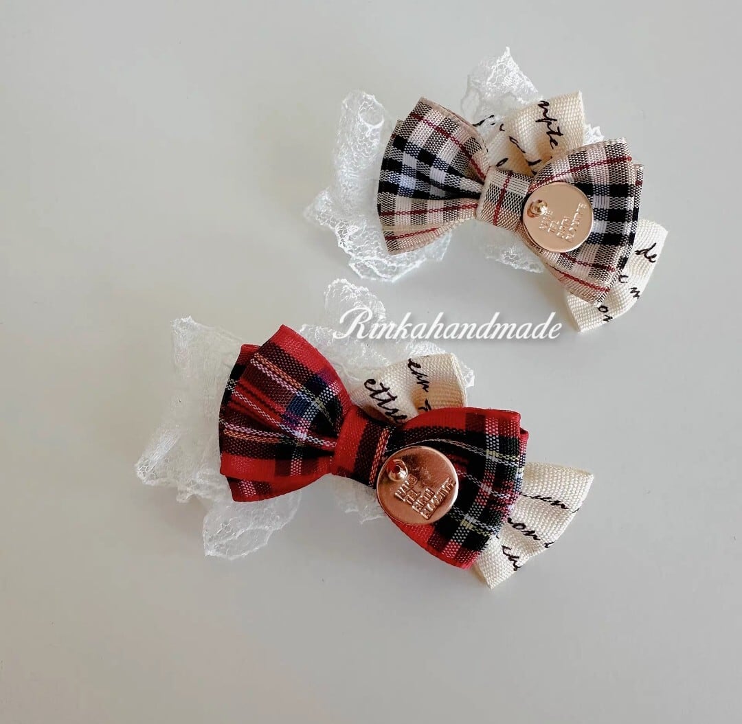 ホワイトのレースにタータンチェックのリボンが可愛いヘアアクセサリー♡