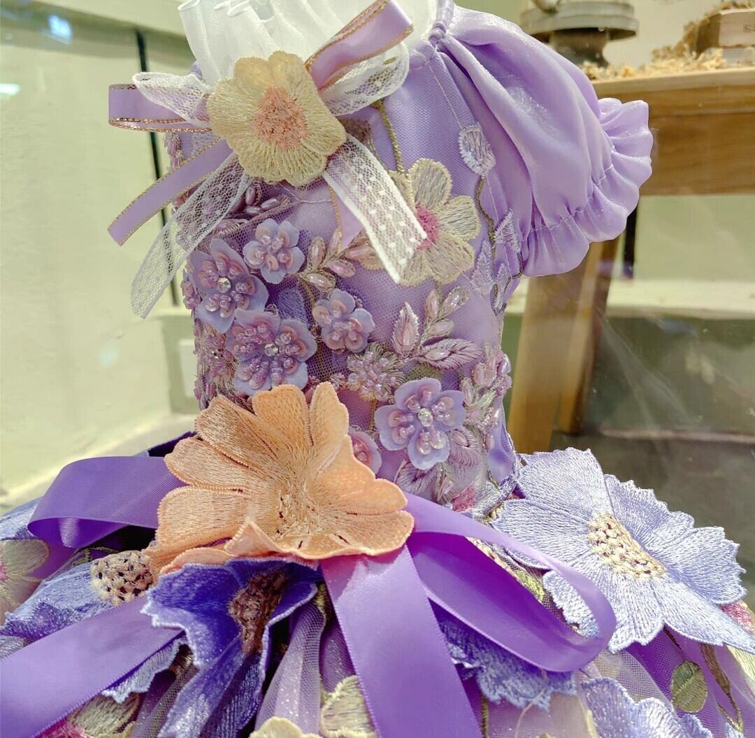 色とりどりの大きなお花モチーフがたくさん豪華なパープルのロングドレス♡