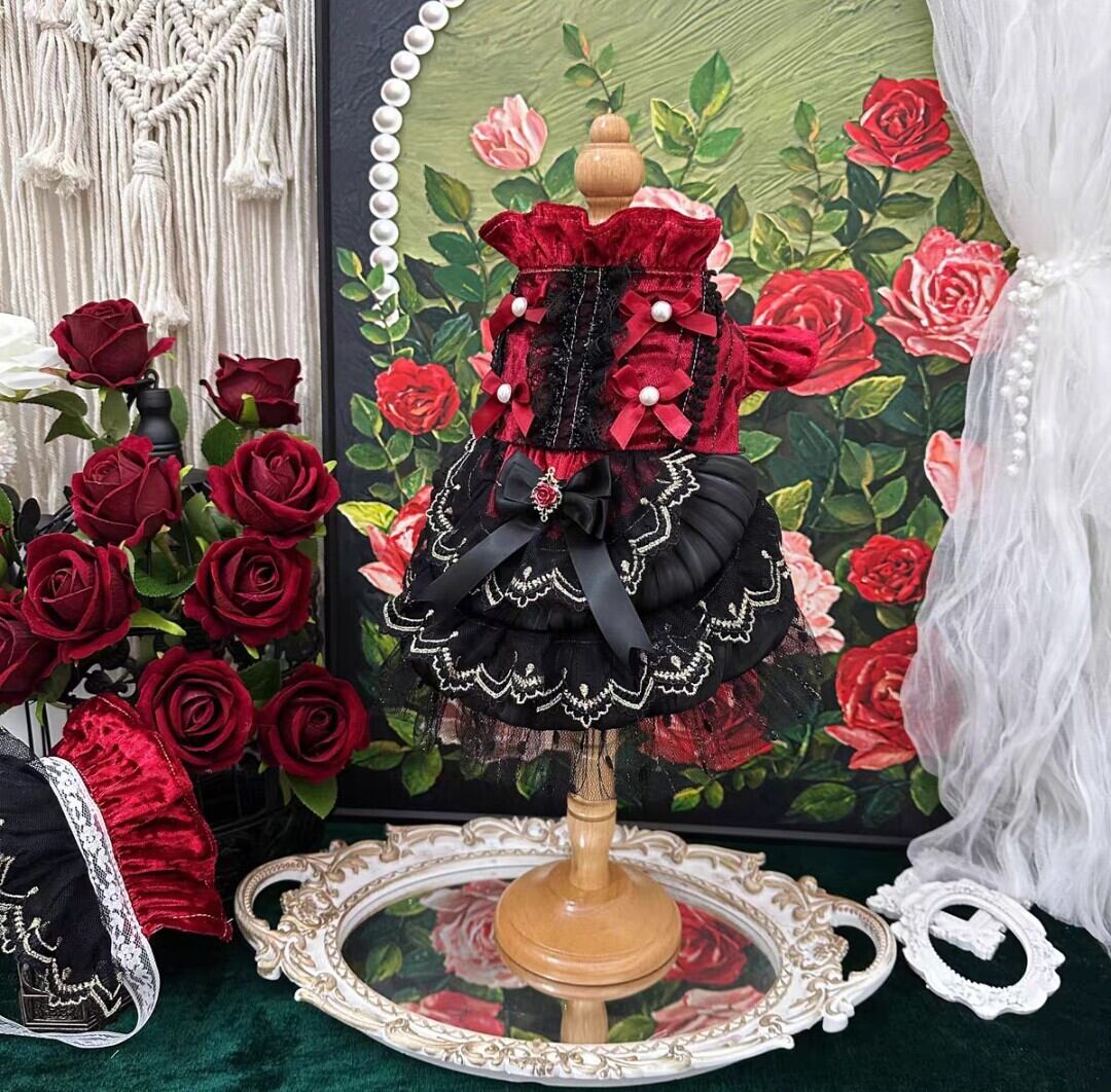 レッドのリボンやブラックのフリルがゴージャスかつ、エレガントなドレスワンピース♡