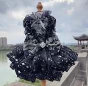 レトロな花柄が素敵なグレーとブラックの組み合わせの上品なドレス♡