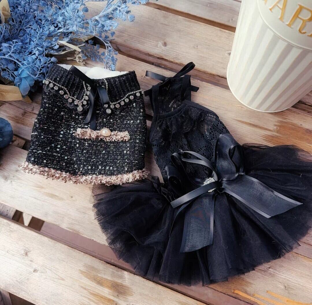 【予約商品】お洒落なブラックベスト+キャミソールドレスの2点セット