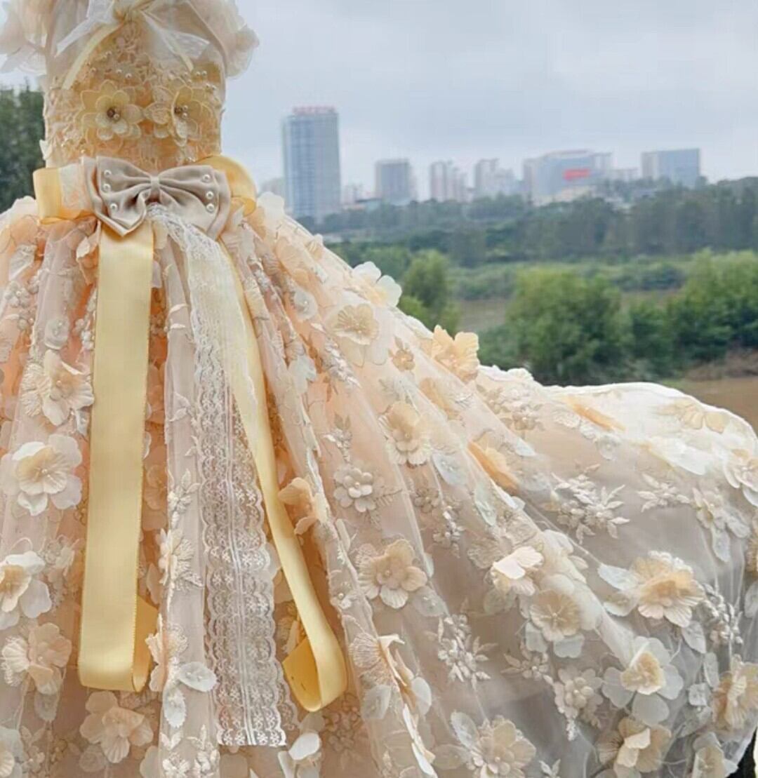 【予約商品】フラワーモチーフ シャンパンカラーロングドレス