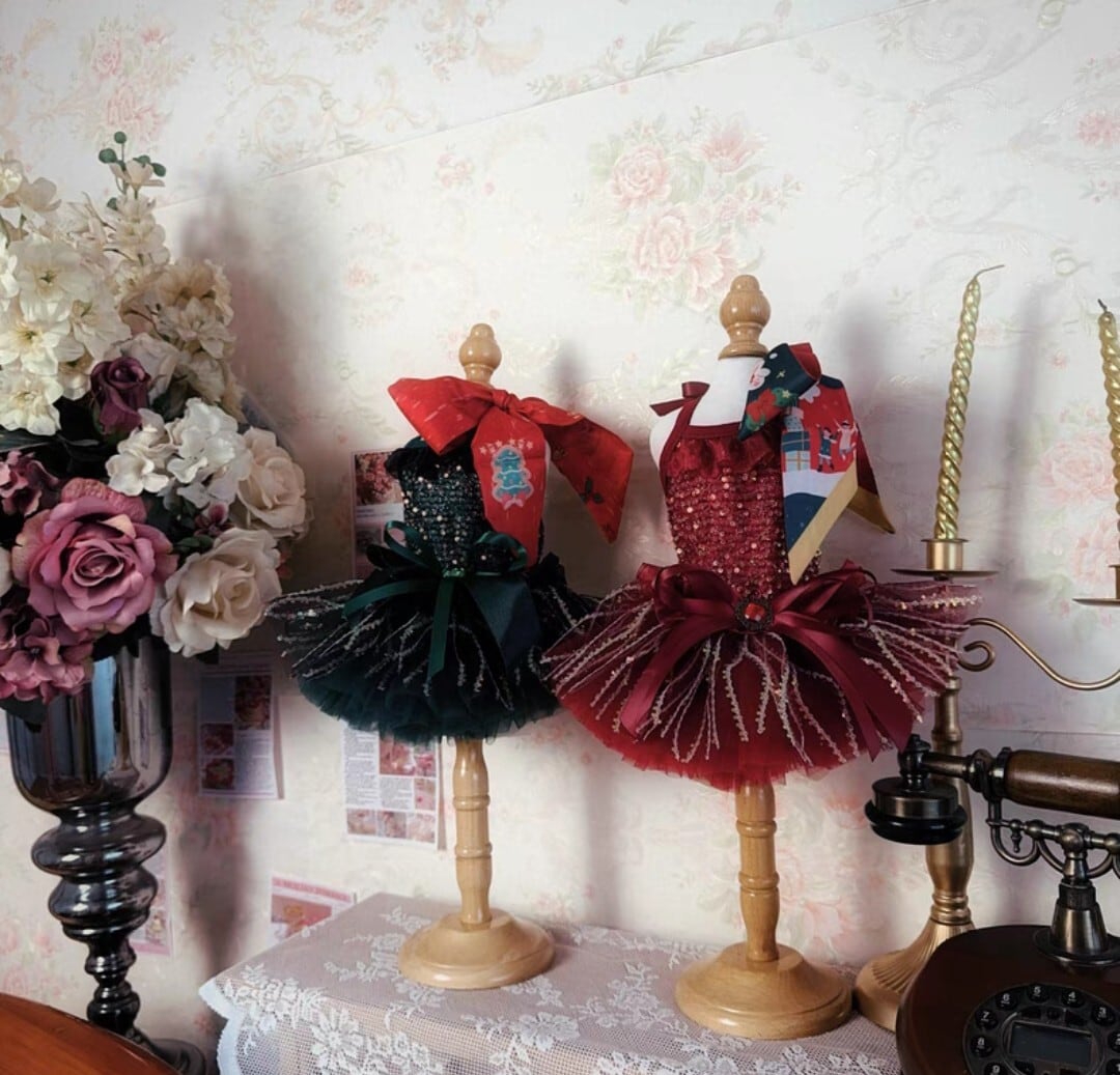 【予約商品】スカーフリボン付き スパンコールのクリスマスドレス(2カラー)