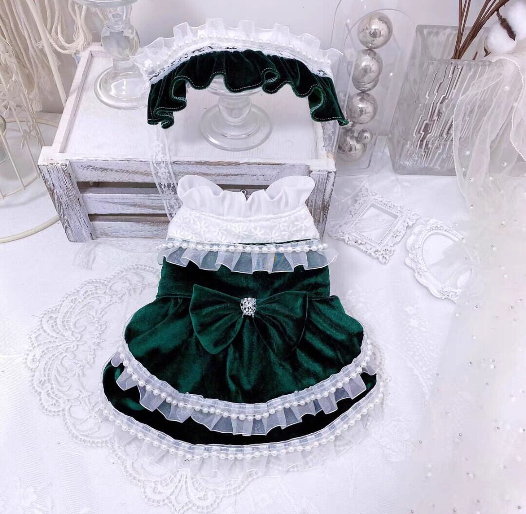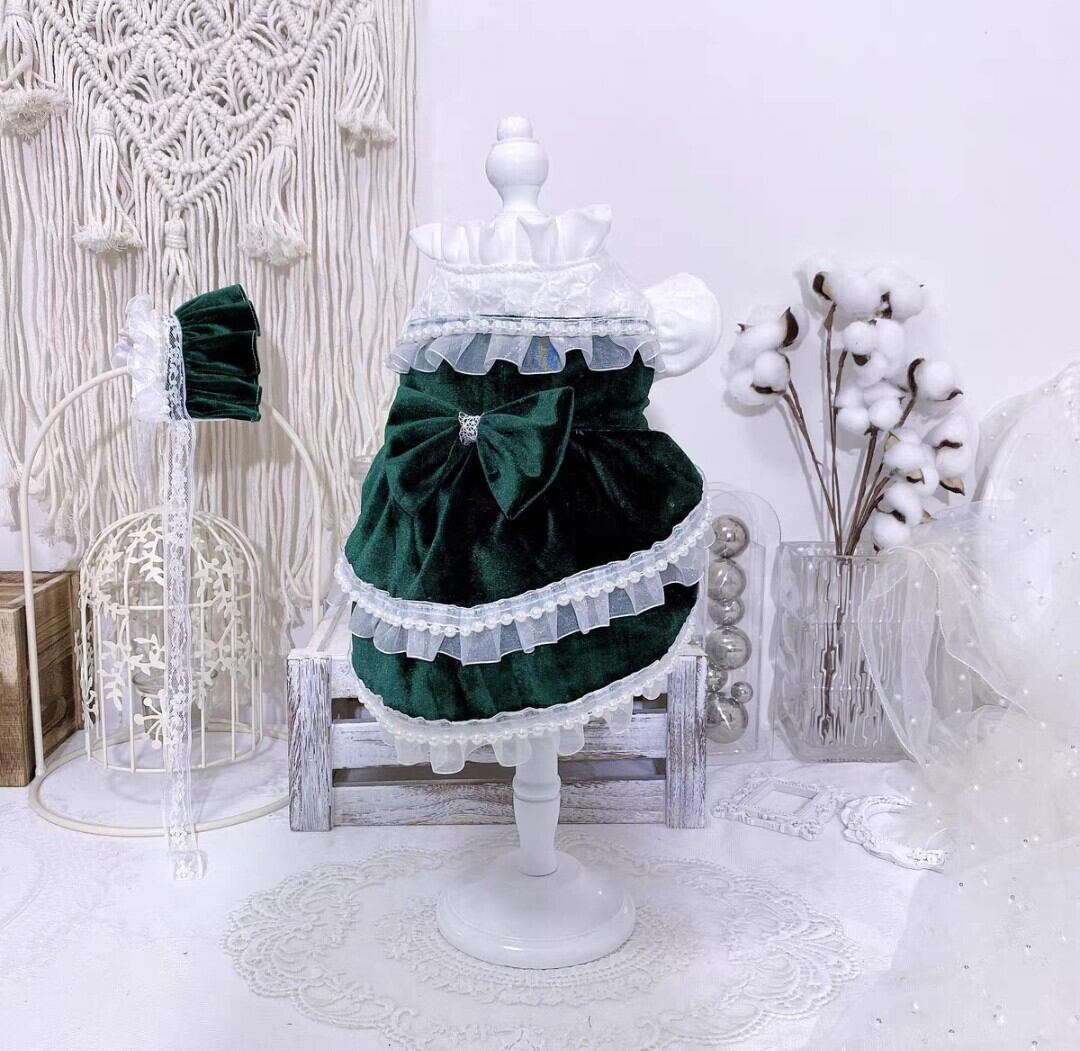 ワンピースのみ。ヘッドドレスは付いていません。生地は秋冬にぴったりのベルベット風生地。
