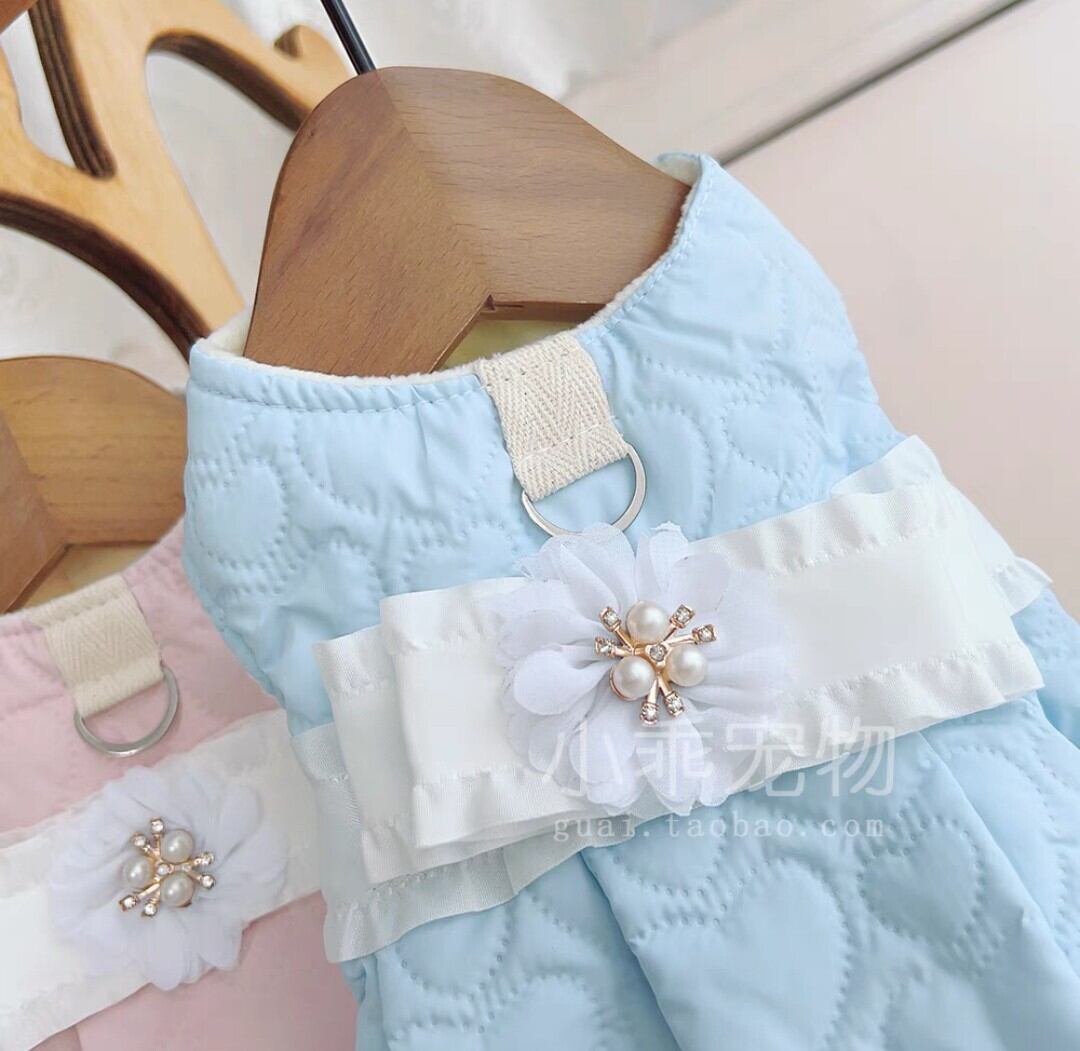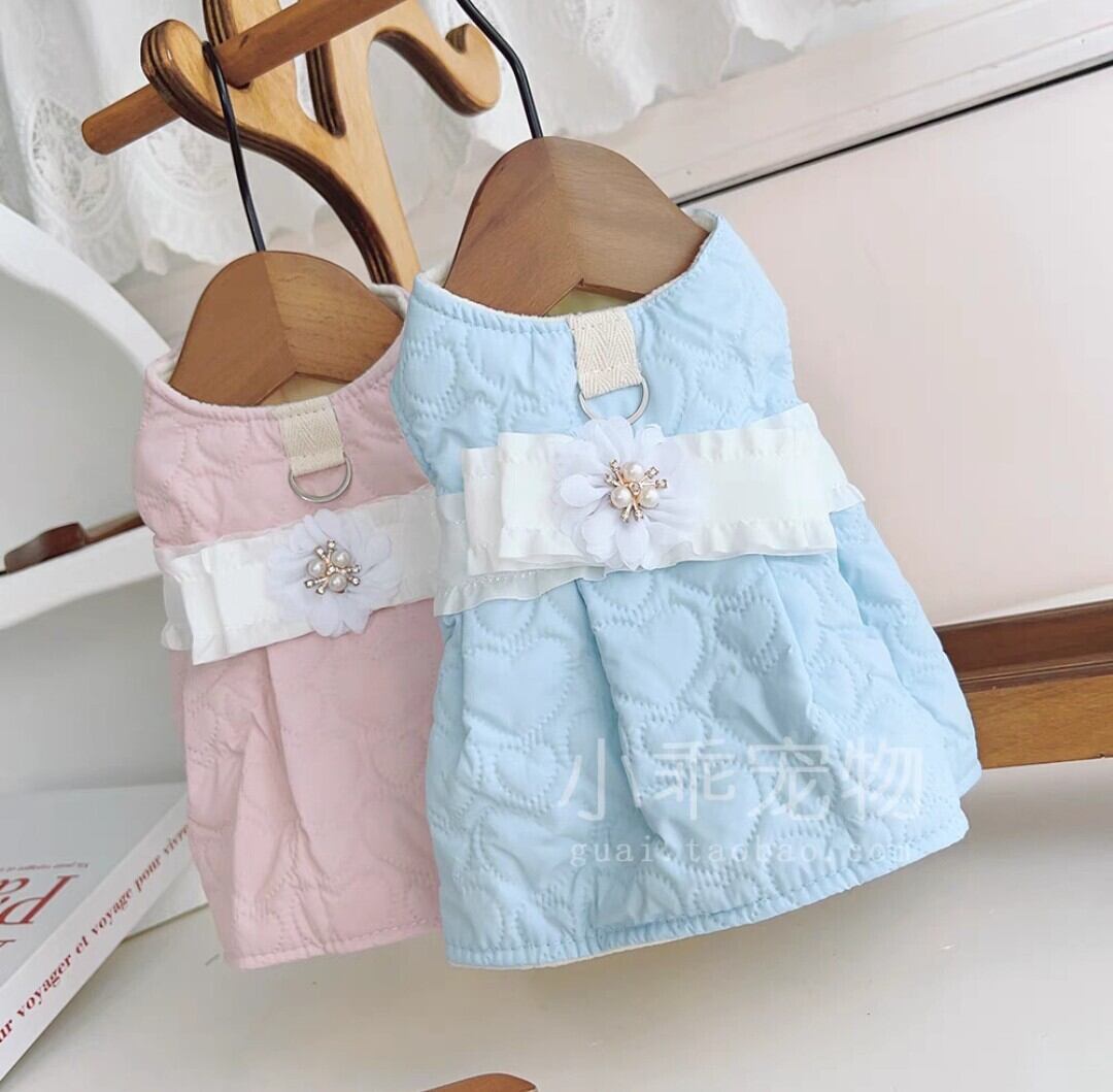 【予約商品】パール飾りのフラワーモチーフ付き ハート柄キルティングのワンピース(2カラー)