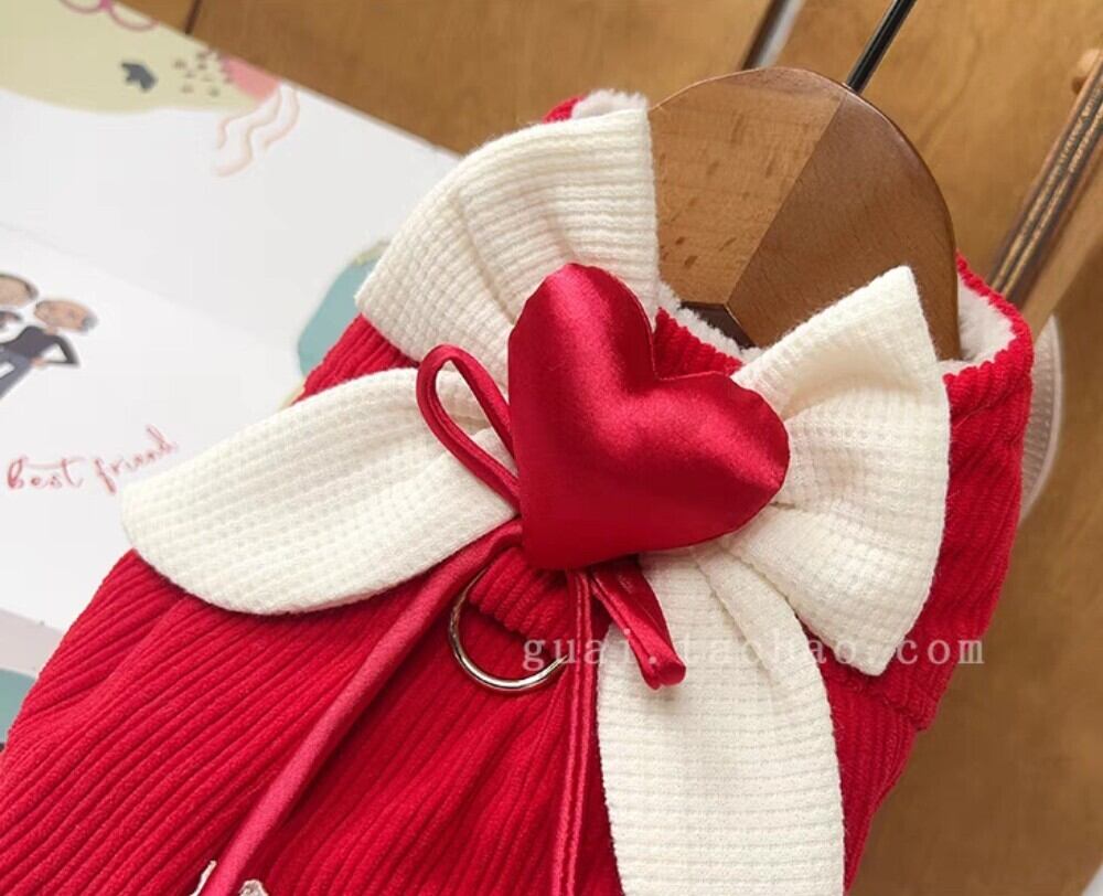 ホワイトのリボンモチーフに付いたぷっくりハートがキュートな裏地ボアのあたたかなワンピース♡