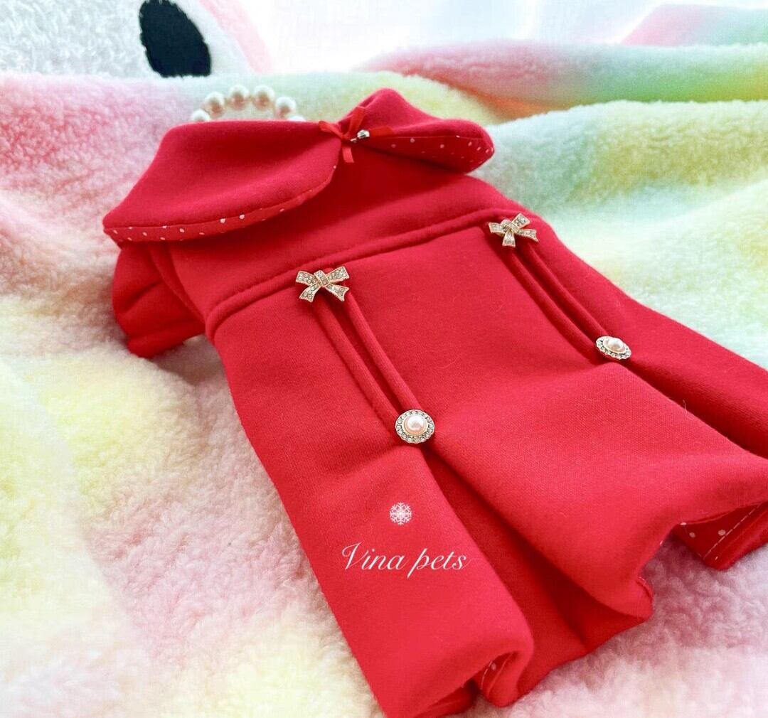 丸襟やプリーツが素敵なデザインの赤いワンピースコート♡