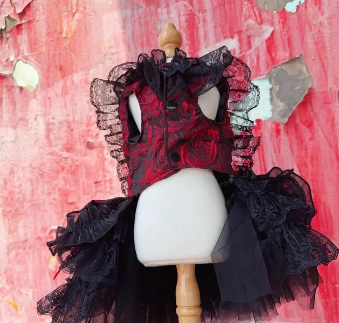 【即納商品】ローズロリータのブラックショートドレス(レッド、ピンク)