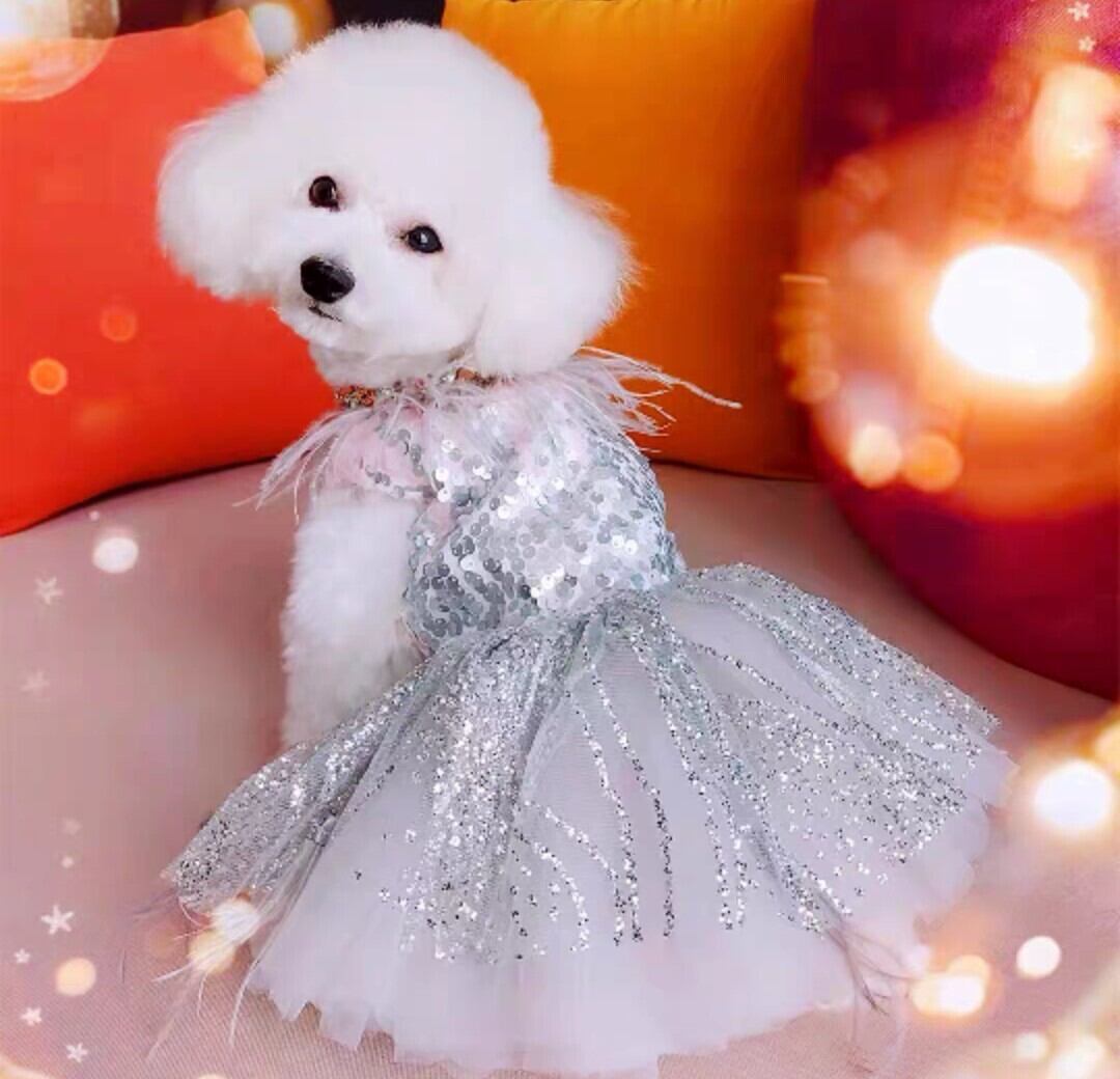 首周りには色とりどりのカラーストーンがあしらわれ、フェザー飾りも付いた、スパンコールもキラキラのシルバーグレーのショートドレス♡